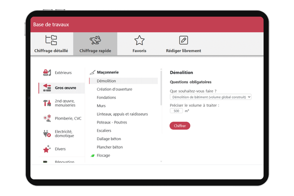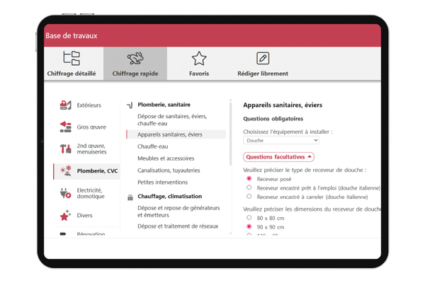 - Chiffrage rapide par questions/réponses : estimez un projet même sans métrés détaillés