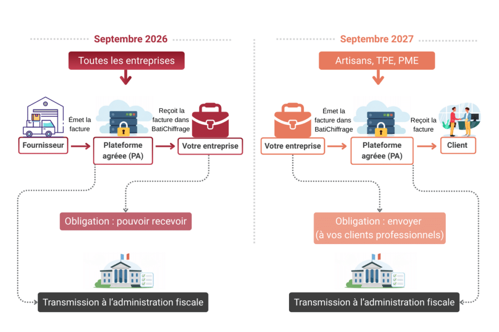 Les entreprises devront pouvoir recevoir des factures dès 2026, puis émettre leurs factures électroniquement à partir de 2027 pour les artisans, TPE et PME.