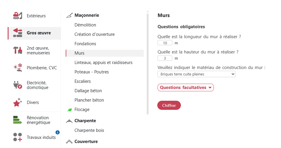 - Chiffrez tous types de travaux : gros œuvre, béton armé, parpaings, briques, fondations, escaliers béton, murs de soutènement, enduits, chapes…